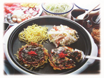 【作り方】 @生地をつくる。ボールに卵,水を入れ,混ぜ合わせる。その中へ小麦粉を2〜3回に分けて加え,混ぜ合わせる。 A野菜はせん切りにしておく。 B小さなボールに生地1/4,野菜1/4,と小えび,紅しょうが,天かす,かつお粉それぞれ1/4ずつ入れ,混ぜる。 Cあらかじめ熱しておいたホットプレート(180℃)又はフライパンに油を薄くひき,Bを丸く流す。その上に肉をのせる。 D裏面がきつね色になり,へらで返せるほどの固さにになったら裏返して同じくらい焼く。 E再び表に返してソースをつけ,青さ粉を振りかけいただく。 *野菜はキャベツ,ニラ,モヤシ,玉ネギ,葱,ピーマンなど冷蔵庫にある物をいれて,色々な味を楽しみましょう。 *肉の代わりにちくわ,卵,油揚げ,ベーコンなどでも美味しくできます。 *ソースはケチャップとウスターソースを同量混ぜ,好みの分量の洋からしを加えます。 *シンプルにあっさりと当社のお好み素材とキャベツだけでもおいしくいただけます。 |
